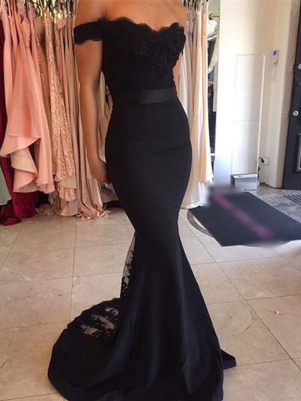 Off Shoulder Black Lace Mermaid Prom Dresses, Black Lace Mermaid Bridesmaid Dresses