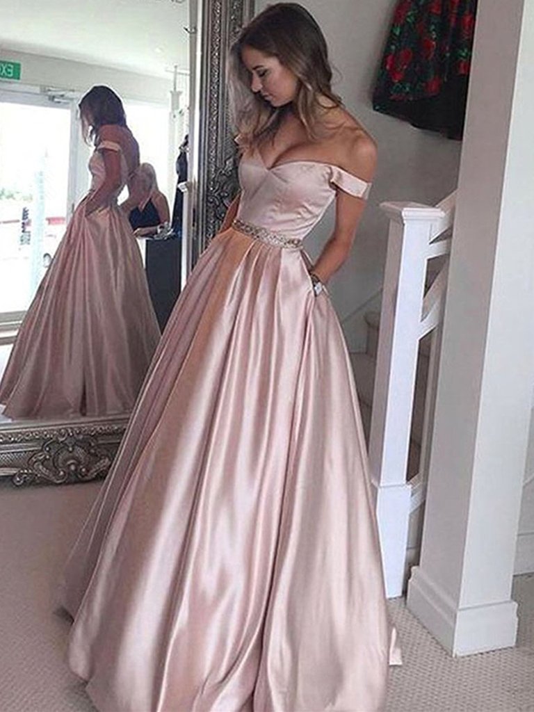 Elegant Off shoulder Floor Length Satin Prom Dress, Off Shoulder Formal Dress, Graduation Dress