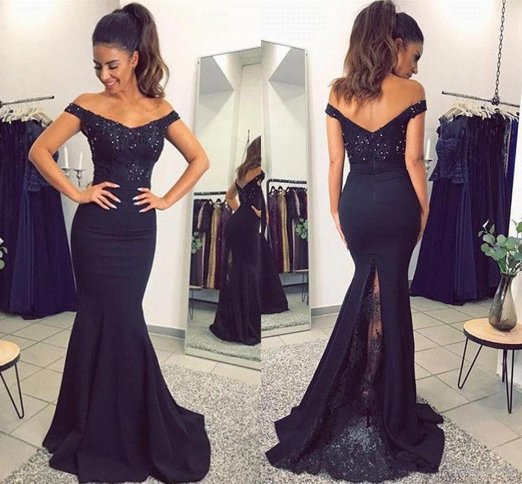 Off Shoulder Blue Lace Mermaid Prom Dress, Lace Mermaid Formal Dress, Lace Evening Dress, Navy Blue Bridesmaid Dress
