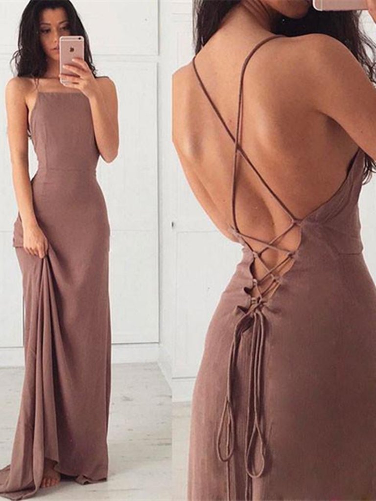 Simple A Line Backless Prom Dress, Open Back Formal Dress