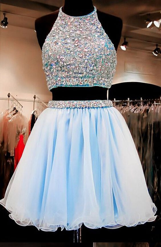 Custom Made A Line Round Neck Short Blue Prom Dress, Short Blue Formal Dress, Cocktail Dress