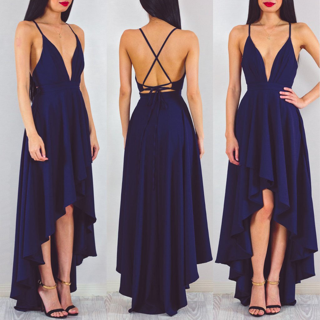 A Line V Neck Navy Blue Backless Prom Dress, Navy Blue Formal Dresses, Bridesmaid Dress