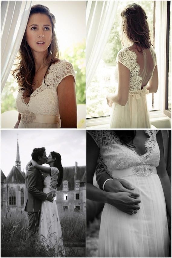 A Line V Neck Cap Sleeves Backless Lace Wedding Dresses, Bridal Dresses, Lace Prom Dresses