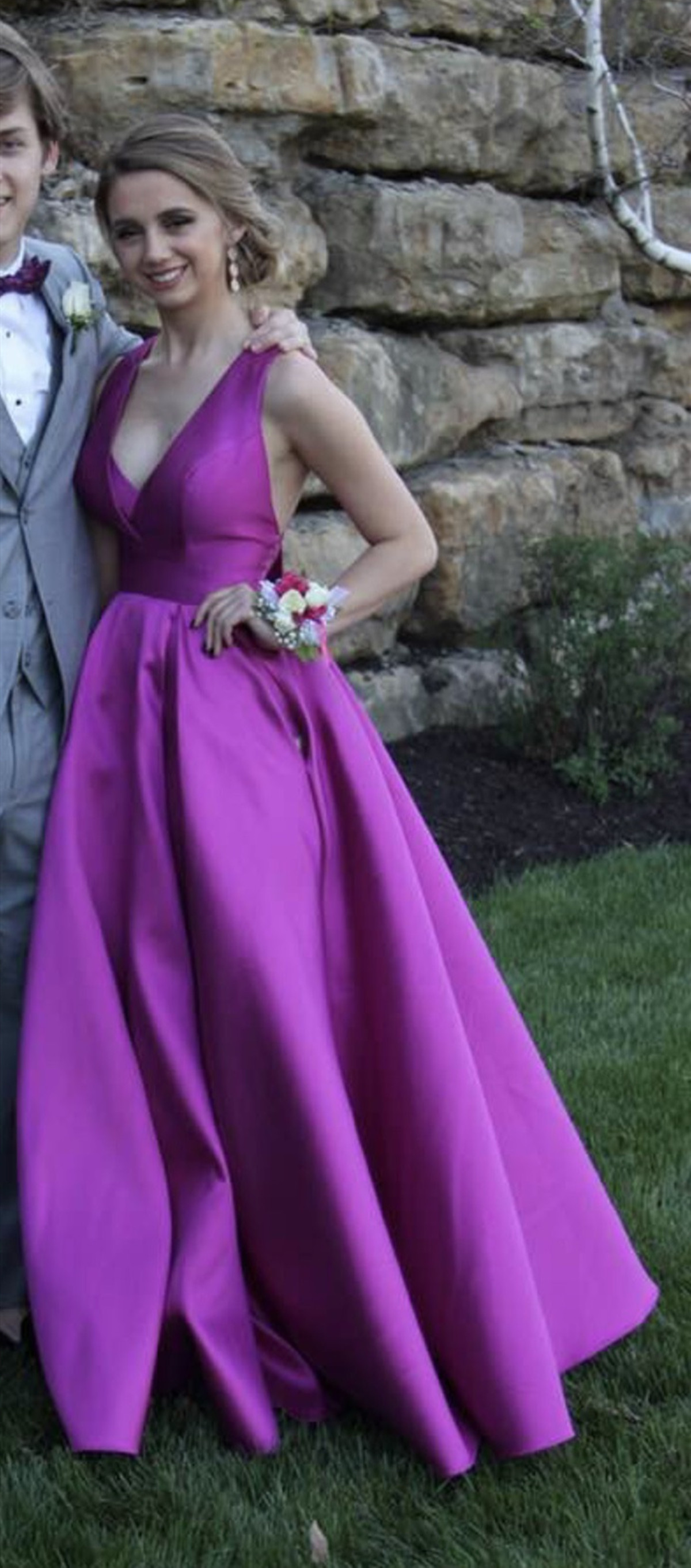 Custom Made A Line V Neck Purple Prom Dress, Purple V Neck Formal Dresses, V Neck Graduation Dresses