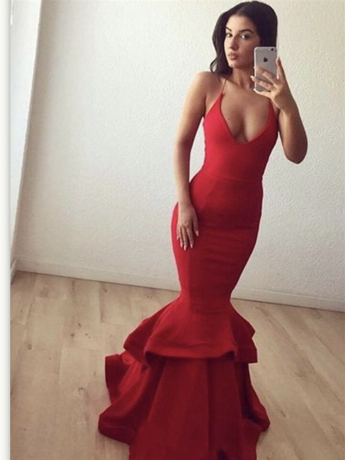 Custom Made Red Mermaid Prom Dresses, Red Mermaid Formal Graduation Evening Dresses