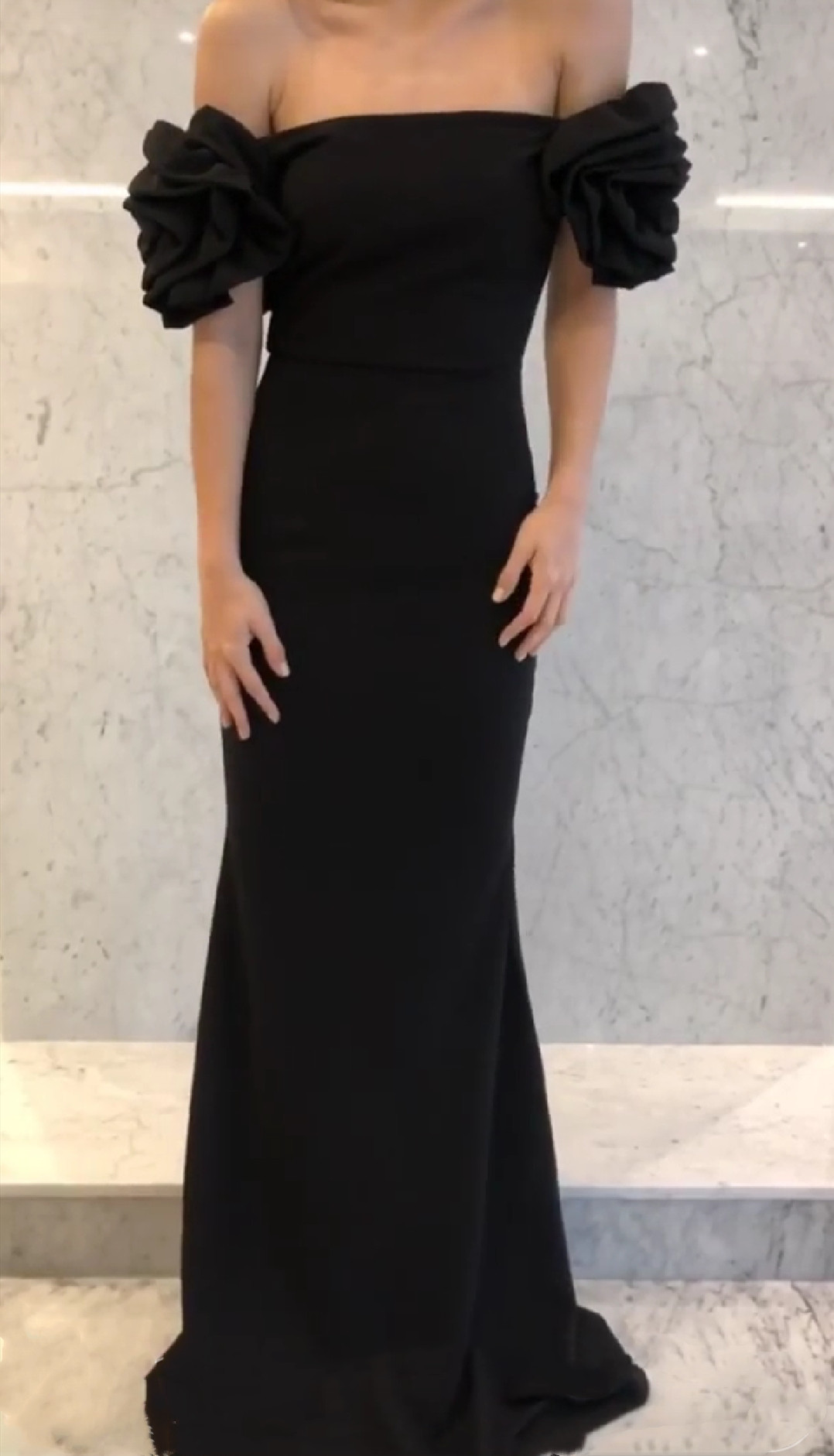 A Line Black Off Shoulder Floor Length Prom Dresses, Black Long Formal Graduation Evening Dresses