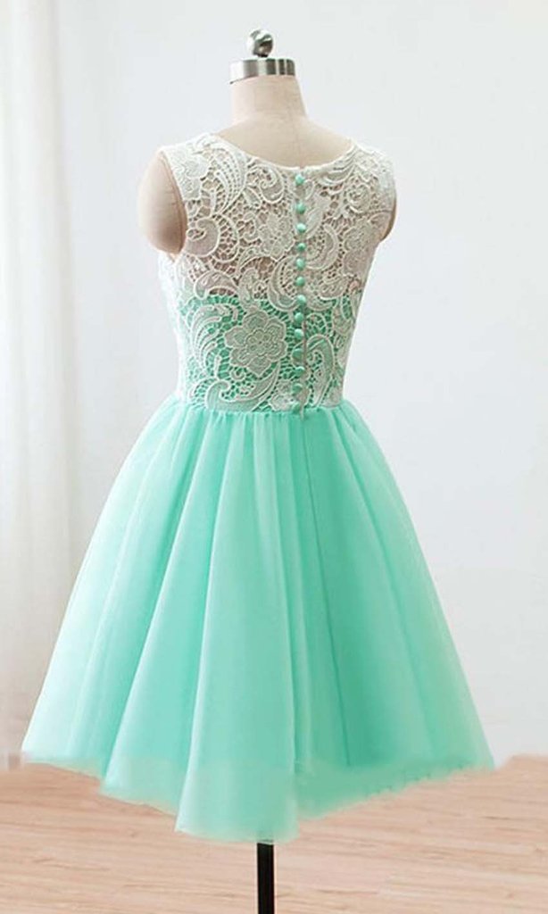 Custom Made A Line Round Neck Short Green Lace Prom Dress, Short Lace Bridesmaid Dress, Homecoming Dress